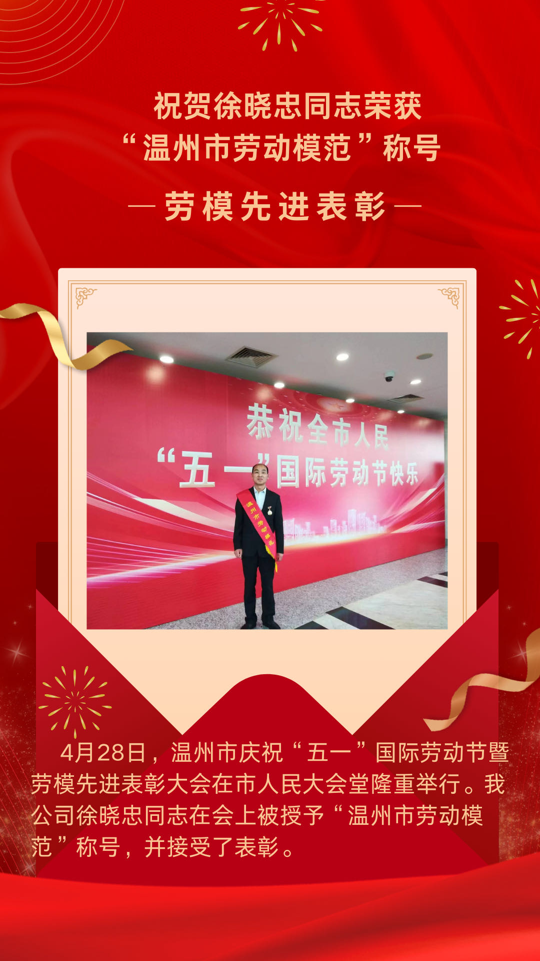 【喜报】海星集团徐晓忠同志荣获“温州市劳动模范”称号