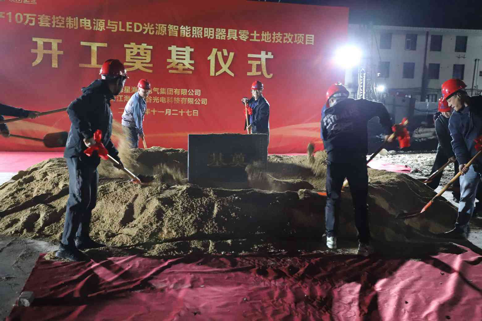 2024年11月27日上午,海星海事电气集团有限公司与浙江海星智谷光电科技有限公司联合建设的年产10万套控制电源与LED光源智能照明器具零土地技改项目开工奠基仪式隆重举行。海星集团董事长傅文隆先生与施工、监理、设计、勘探等单位代表一起出席参加,共同见证这一重要时刻的到来。