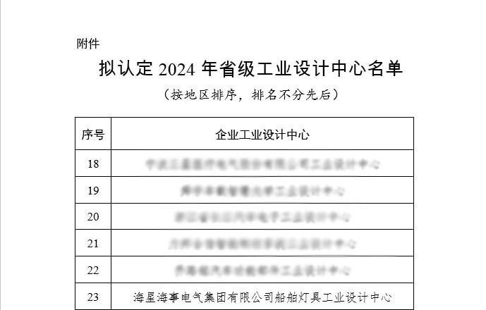 近日,浙江省经济和信息化厅先后公布了2024年度省级工业设计中心认定名单和2024年浙江省企业技术中心认定名单,海星海事电气集团申报的“海星海事电气集团有限公司船舶灯具工业设计中心”和“海星海事电气集团有限公司企业技术中心”均获得省级批准认定。