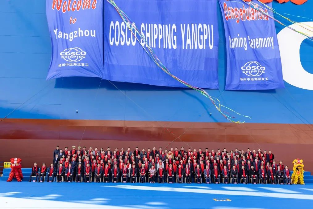 2月18日上午,扬州中远海运重工承建的中远海运集运国内首制16136TEU 甲醇双燃料集装箱船(N1071)在其公司3号码头顺利命名。该项目的成功建造,标志着中远海运集团在积极推进绿色低碳智能船队建设方面取得新的进展。