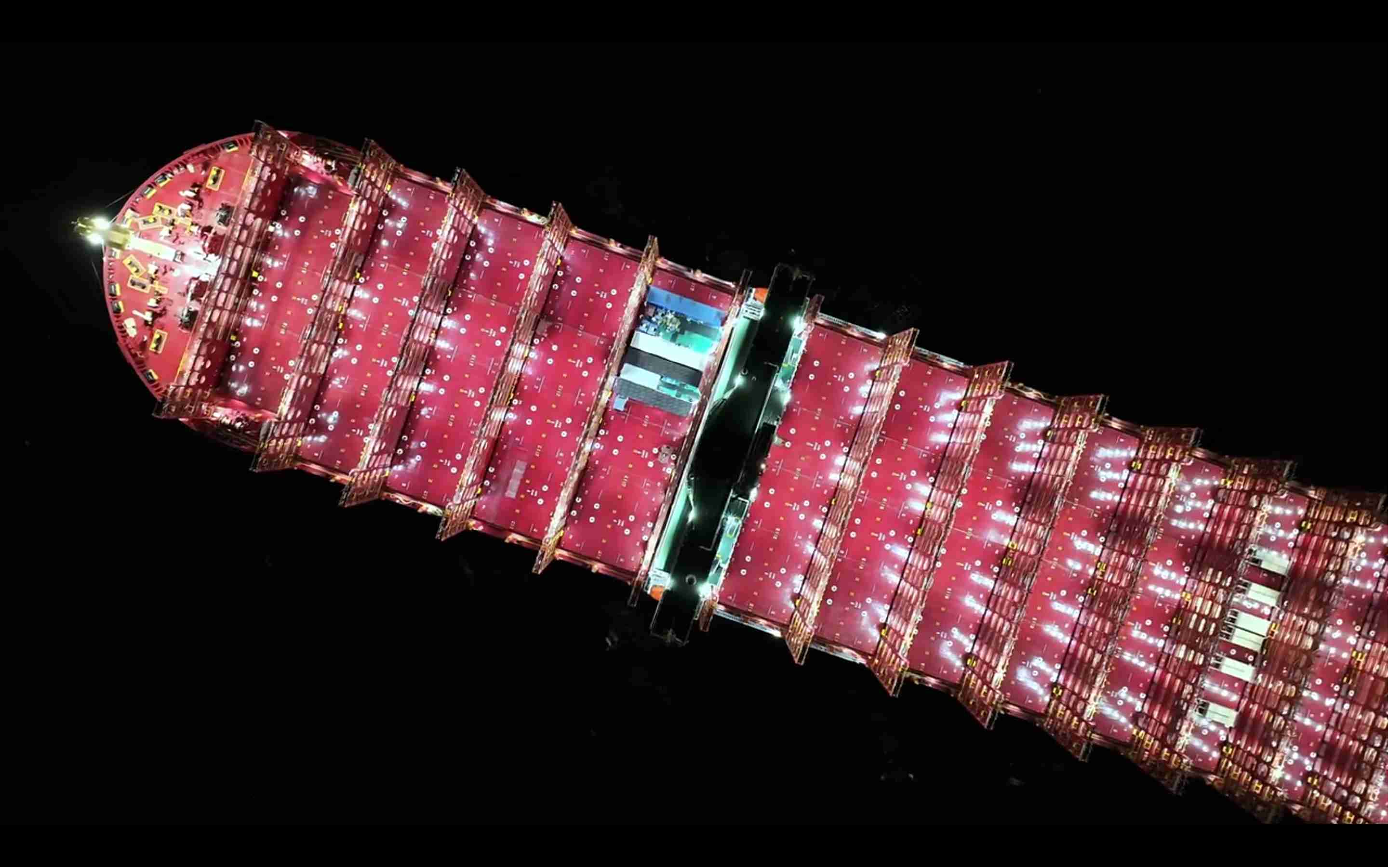 该船型总长 366 米,型宽 51 米,最大装箱量达 16136 标箱,在技术创新、绿色低碳、数字智能等多个维度达到行业领先水平。凭借创新设计的超大甲醇储存舱,船舶可在甲醇动力模式下完成远东至美西单程航行,极大地提升了船舶运营效率,为中远海运全球航运线路优化提供了新的方案。同时,在数字智能系统加持下,船舶能耗及降碳指标均得到显著优化,展现出卓越的能源利用效率,为航运业节能减排树立了新标杆。