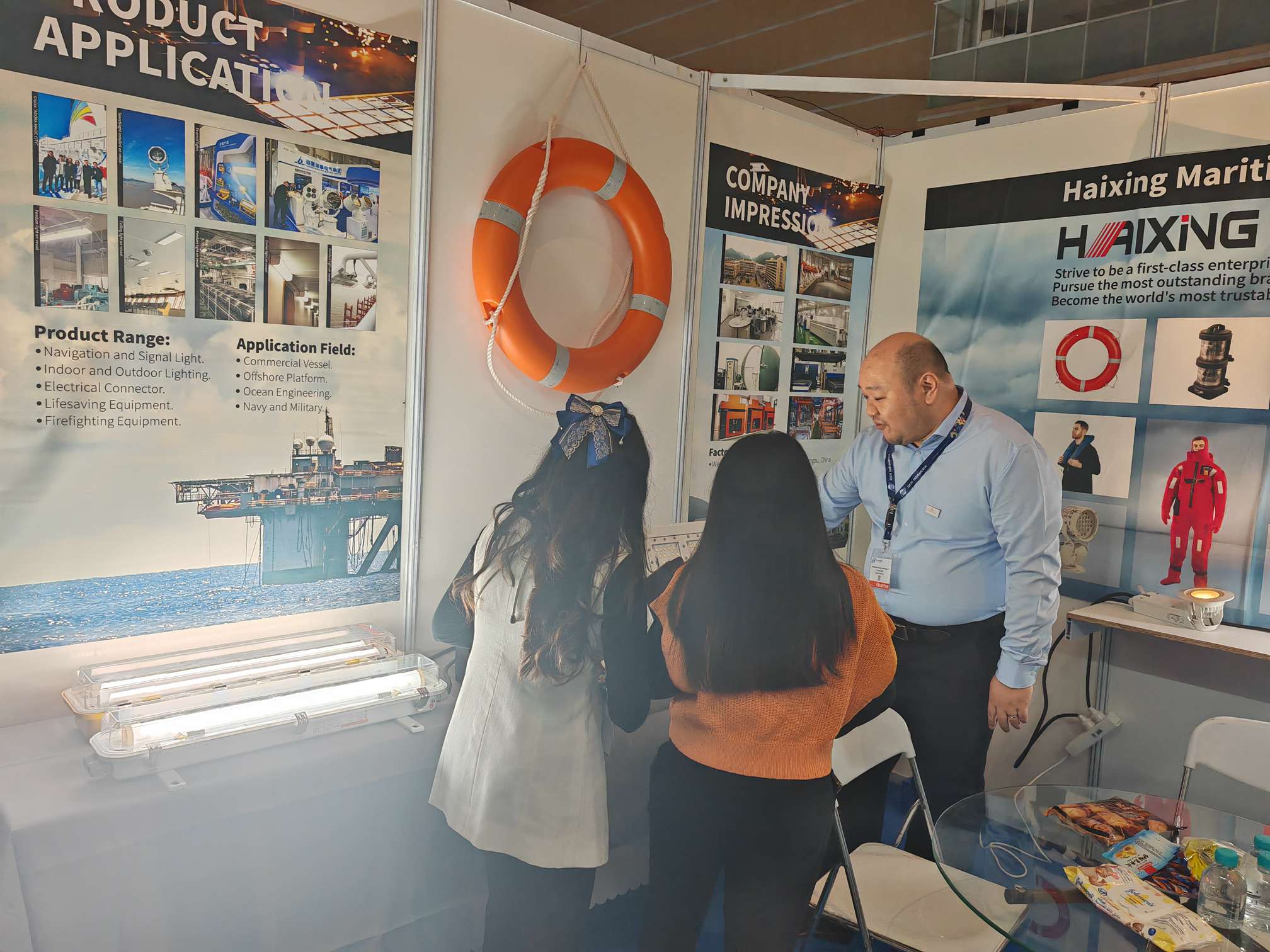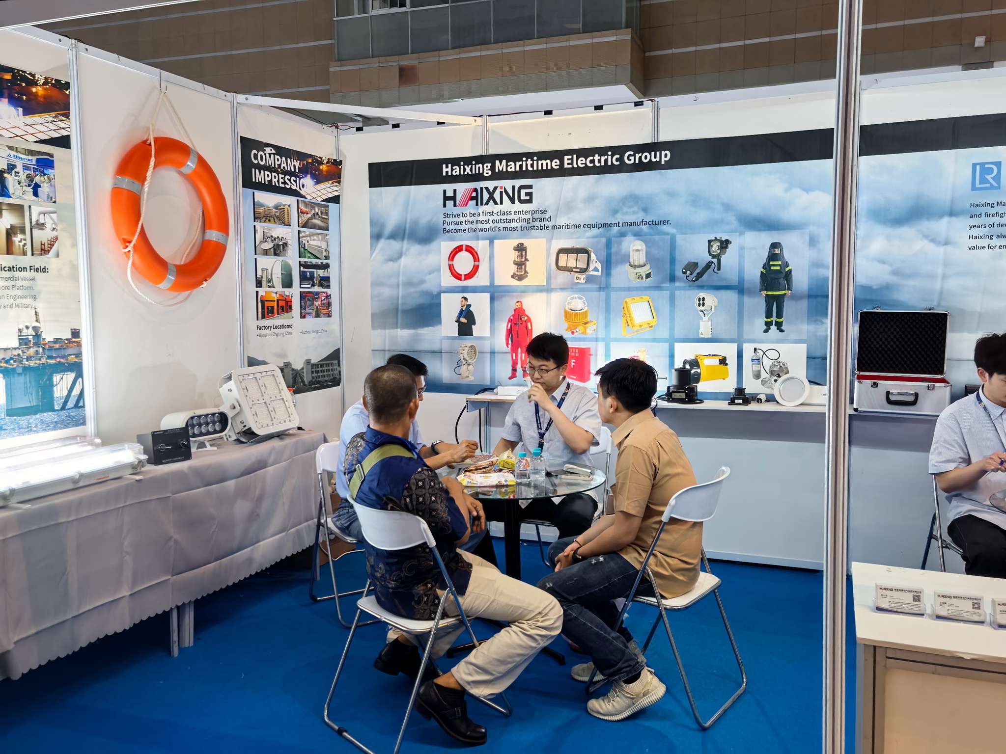 展会现场,我们展出了新型LED单层双光源航行灯、小型LED远程控制搜索灯、防爆灯具、救生设备等产品,并为客户介绍全新的船舶智能照明方案,直观诠释“可靠、创新”的品牌理念,吸引众多行业人士驻足交流,彰显海星集团在海事电气领域的深厚积淀与市场影响力。