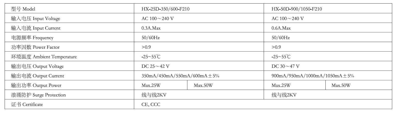 具有输出过压保护、输出短路保护、过温保护以及输入高达2KV的浪涌保护等功能,驱动寿命大于50000小时,保证了产品的高可靠性
